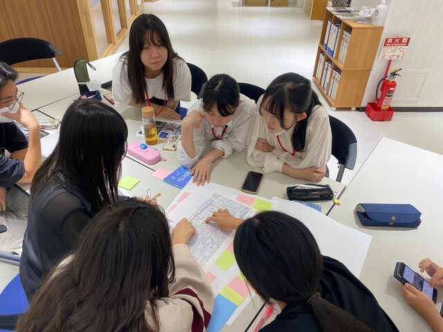 4つの学校から集まっているので、いつもみんなで徳島駅前にある「徳島市まちづくり協働プラザ」へ集まり、打ち合わせをしています。